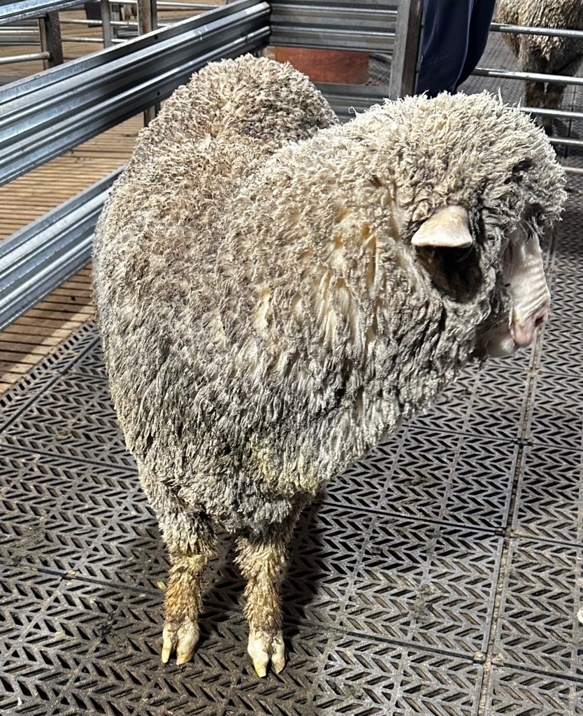 23-0109 – photo taken October 2024 with 6 months wool and photos taken in January 2025 after shearing