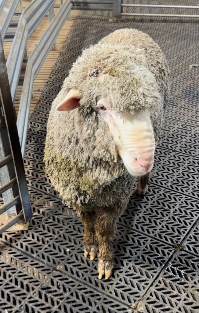 23-0170 – photo taken October 2024 with 6 months wool & photos taken January 2025 after shearing