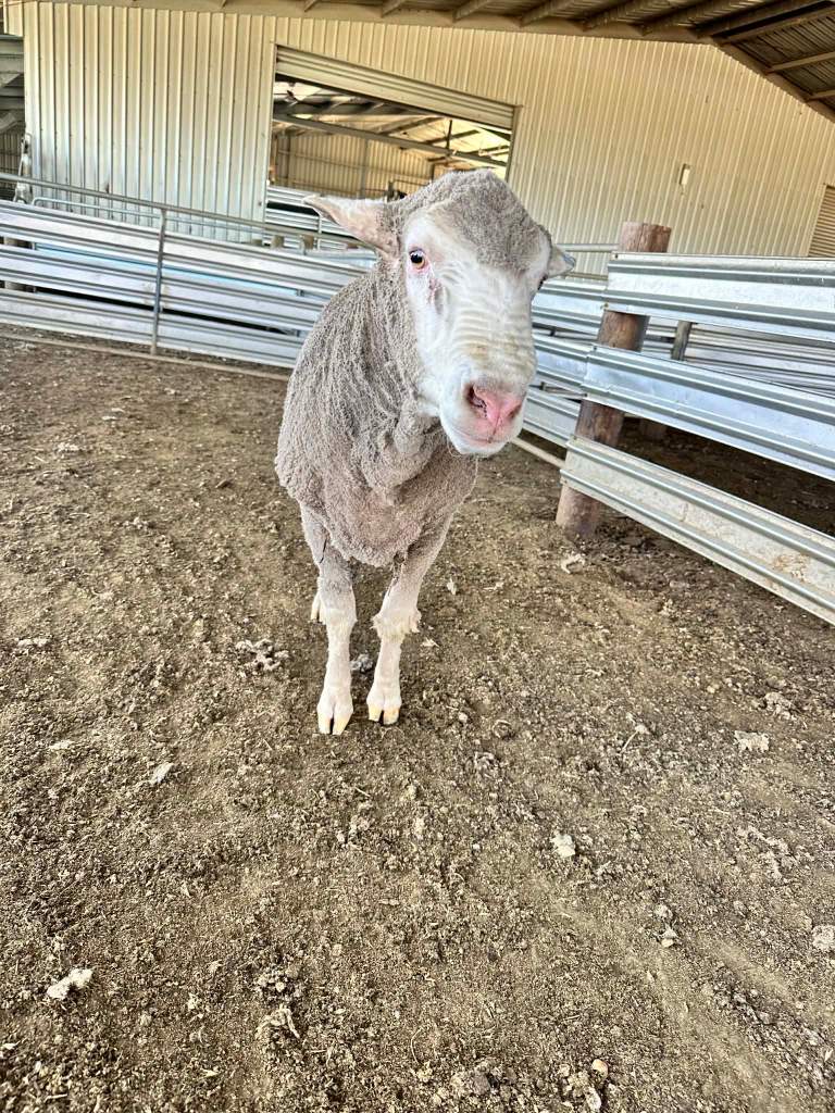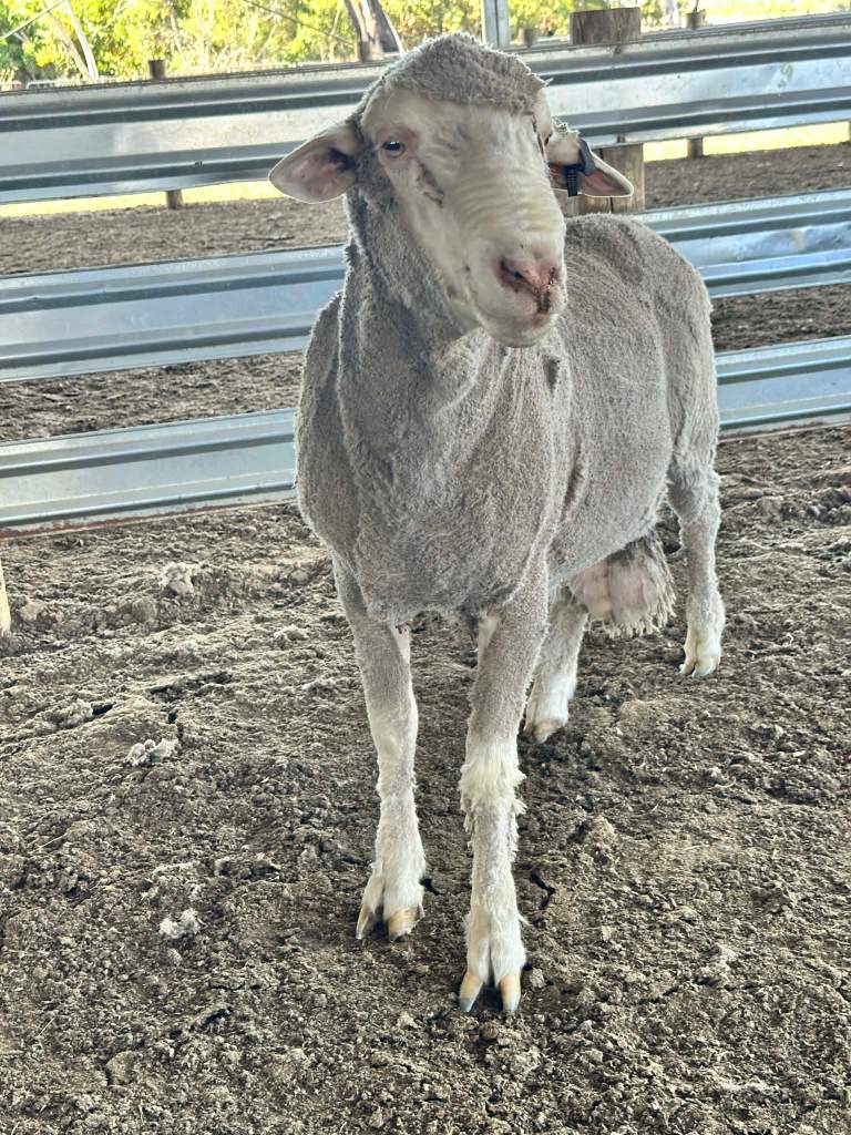 23-0109 – Sheep Genetics ASBVs – photo taken October 2024 with 6 months wool and photos taken in January 2025 after shearing